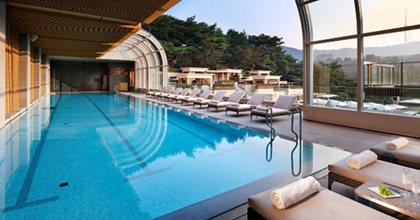 유리돔을 통해 보이는 남산의 전경을 만끽하며 즐기는 수영과 휴식