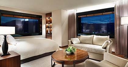 * 이그제큐티브 비즈니스 룸 예약 시, 정부의 사회적 거리두기 강화 조치에 발맞춰 더 이그제큐티브 라운지의 다이닝 서비스를 테이블로 별도의 메뉴가 서비스되는 형태로 변경하여 운영됩니다.