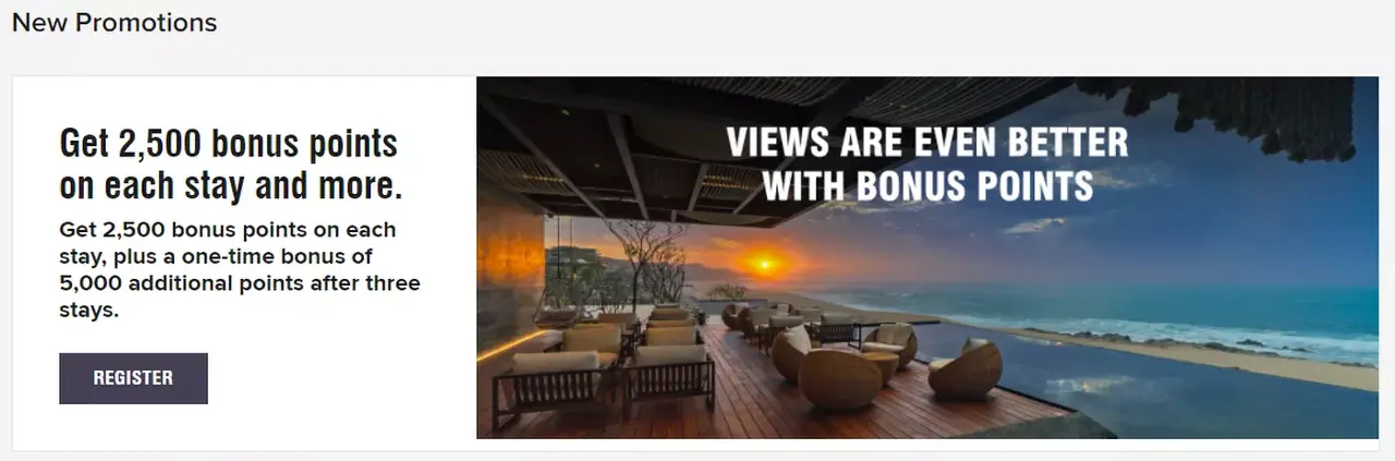 Get 2,500 bonus points on each stay, plus a one-time bonus of 5,000 additional points after three stays.